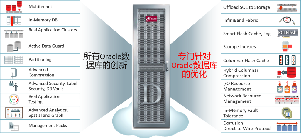 神州數(shù)碼登云數(shù)據(jù)庫一體機通過集成設計為Oracle數(shù)據(jù)庫帶來了卓越的性能、極佳的成本效益和極高的可用性。登云數(shù)據(jù)庫一體機采用支持云的現(xiàn)代化架構,內(nèi)含可橫向擴展的高性能數(shù)據(jù)庫服務器、可橫向擴展的智能存儲服務器(配有先進的PCIe閃存)、使用持久性內(nèi)存的先進存儲緩存以及連接所有服務器和存儲的云級RDMA over Converged Ethernet (RoCE) 內(nèi)部結構。登云數(shù)據(jù)庫一體機采用獨有的算法和協(xié)議,在存儲、計算和網(wǎng)絡中實現(xiàn)了數(shù)據(jù)庫智能,因此,與其他平臺相比,能以更低的成本提供更高的性能和容量。它適用于所有類型的現(xiàn)代數(shù)據(jù)庫負載,包括聯(lián)機事務處理(OLTP)、數(shù)據(jù)倉庫(DW)、內(nèi)存分析、物聯(lián)網(wǎng)(IoT)、財務、游戲、合規(guī)性數(shù)據(jù)管理以及高效整合的混合負載。登云數(shù)據(jù)庫一體機部署簡單、快速,能為您極其重要的數(shù)據(jù)庫提供全面的支持和保護。